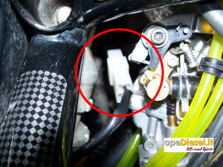 Da questo punto faremo partire la “bretella” che, attraversando longitudinalmente la moto nella zona filtro (o monoammortizzatore), verrà connessa all’interruttore della pompa freno posteriore.